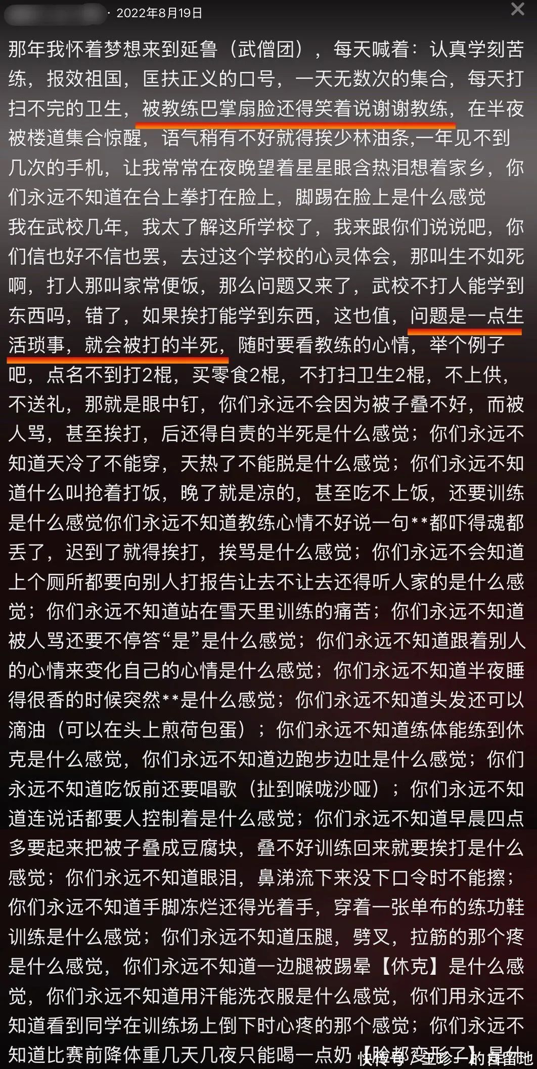 值得一提的是,有少林延鲁武校的学生发文称,该武校管理非常严格,学生经常挨打,如果家长想送孩子去该校,还是要好好考虑一下自己和孩子能不能受得了该校的管理方式。