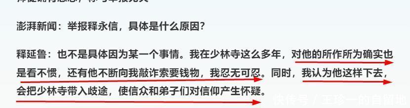 不过释延鲁不认可这一说法,他说他主要是看不惯释永信的所作所为,认为他再这样下去,会将少林寺带入歧途,使信众和弟子们对信仰产生怀疑。